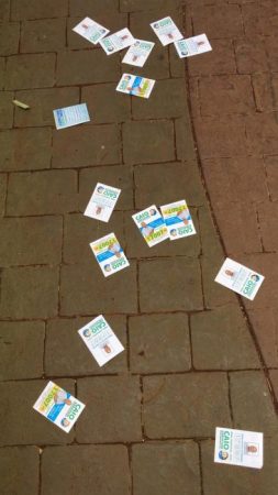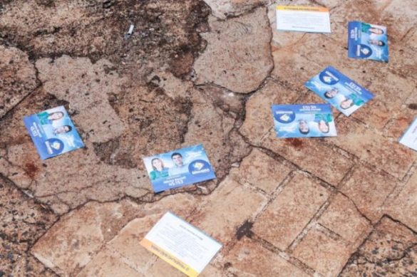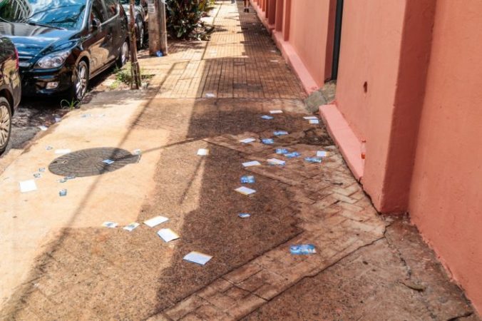 Apesar da proibição, candidatos espalham santinhos na porta dos locais de votação