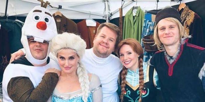 Os atores de Frozen participaram do programa The Late Late Show, do apresentador James Corden, na quarta-feira, 20, e cantaram e encenaram algumas das músicas dos longas. Tudo fez parte do quadro Crosswalk the Musical, no qual Corden reúne uma equipe para reproduzir musicais nas faixas de pedestres em meio ao trânsito de Los Angeles (EUA).
