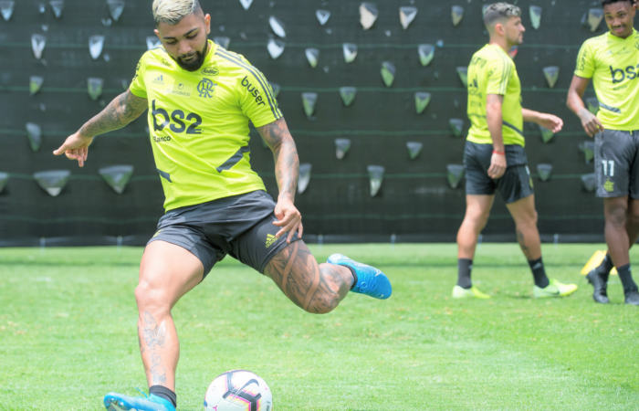O Mengão vai começar a partida com a seguinte escalação: Diego Alves; Rafinha, Rodrigo Caio, Pablo Marí e Filipe Luís; Willian Arão, Gérson, Arrascaeta e Everton Ribeiro; Bruno Henrique e Gabigol.