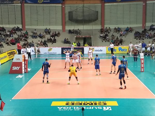 O duelo ficou marcado, no entanto, por situações peculiares. A começar pela paralisação de 40 minutos no decorrer do terceiro set, por causa da forte chuva, que causou goteiras na quadra e falha nos refletores de luz do ginásio.