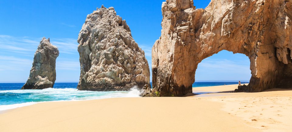 Outro destino popular mexicano, Cabo San Lucas oferece desde belezas naturais a grandes atividades em alto-mar (mergulho com snorkel, kitesurf e passeios a cavalo na praia para iniciantes). Outrora uma pequena vila de pescadores no extremo sul da península de Baja, no México, hoje o “Cabo” está repleto de edifícios cor-de-rosa e coral, campos de golfe e praias imaculadas.