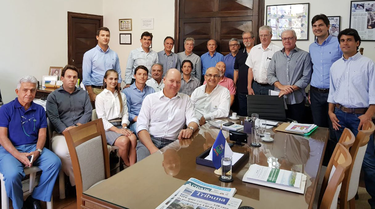 Um grupo de empresários da construção civil associados ao SindusCon-SP (Sindicato da Indústria da Construção Civil do Estado de São Paulo) se reuniu, na última quinta-feira (19), com o prefeito Duarte Nogueira, no Palácio Rio Branco. Participaram do encontro também o secretário de Planejamento e Gestão Pública, Edsom Ortega; o superintendente do DAERP, Afonso dos Reis Duarte; o novo diretor técnico do Departamento, Lineu Andrade de Almeida e o diretor de urbanismo da Prefeitura de Ribeirão Preto José Roberto Bonetti.