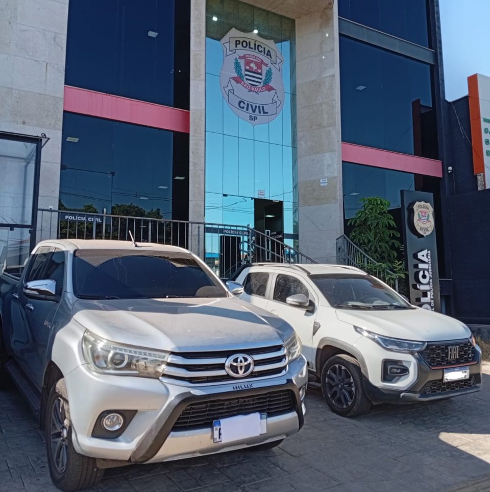 Um dos veículos foi furtado na cidade de Socorro, região de Campinas, em fevereiro deste ano. A outra caminhonete foi roubada em uma fazenda na cidade de Três Pontas (MG), no mês de abril. Ambos os carros estavam com placas de veículos com as mesmas características, sendo, portanto, veículos dublês.