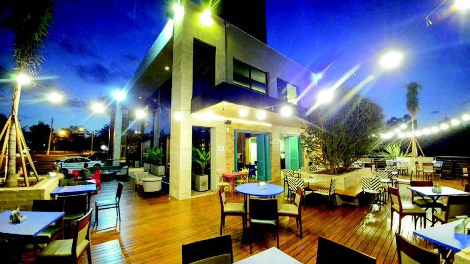 A casa possui um generoso deck que circula por todo ambiente externo, que faz referência a uma ilha, para um happy hour divertido, descolado e, claro, muito bem acompanhado de cervejas geladas e deliciosas comidinhas. Já o ambiente interno, com pé-direito de oito metros, abriga um bar extenso, onde o balcão é um verdadeiro convite para apreciar os deliciosos drinks autorais.