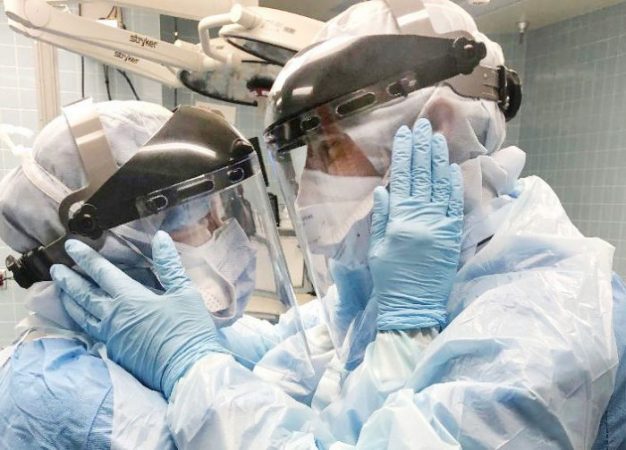 Eles trabalham nos procedimentos de entubação dos pacientes com covid-19 que precisam de respiradores. A foto foi tirada por um colega de trabalho. Os dois se conheceram em 2007, numa escola de enfermagem, se casaram em 2015, e se ofereceram para trabalhar como voluntários. A mãe de Mindy contraiu a doença mas já está recuperada. Globalmente, de acordo com a Universidade Johns Hopkins, dos Estados Unidos, o total de vítimas fatais da covid-19 é de 142.148 pessoas. Quase 2,14 milhões já foram infectadas.