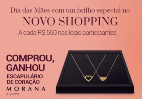 O Novo Shopping lançou campanha de Dia das Mães com a mecânica “Compre e Ganhe”, válida de 24 de abril a 10 de maio. A cada R$ 550 em compras, clientes recebem um escapulário da marca Morana como brinde. A ação busca valorizar a data e incentivar as vendas no período. Além disso, o shopping promove programação especial com música ao vivo na praça de alimentação. A iniciativa reforça a experiência de compra e lazer para o público.