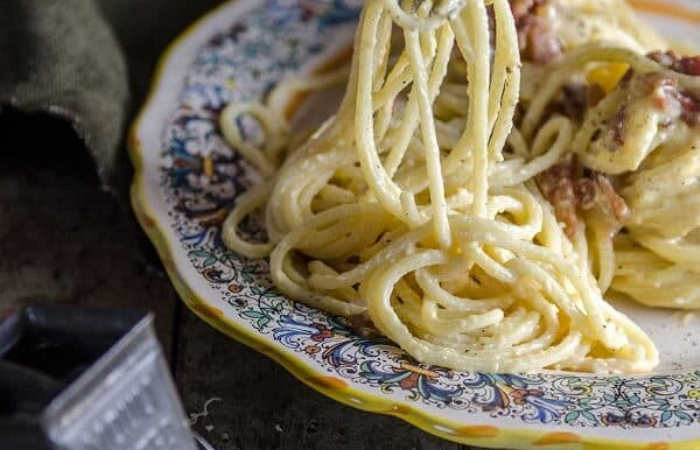5. Junte a massa ao creme de ovos, acrescente uma concha da água do cozimento ainda quente e misture bem para dar cremosidade.