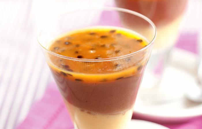 3. Divida em quatro taças, cubra-as com a polpa da outra metade e depois leve à geladeira por 1 hora.
