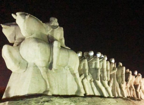 Durante o mês de maio, 16 monumentos e estátuas espa­lhados pela cidade de São Paulo ganham máscaras de proteção para conscientizar a população sobre a importância de usar a peça para se proteger contra o novo coronavírus. A ação, que começou nesta terça-feira, é re­alizada pelo governo estadual em parceria com a prefeitura da capital. O uso do acessório pas­sou a ser obrigatório em todo o Estado a partir do dia 7 de maio.