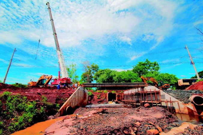 A construção da ponte sobre o córrego das Palmeiras, que come­çou a receber as vigas de susten­tação, é considerada a etapa mais complexa das obras de duplicação da avenida devido aos projetos de engenharia e licenças ambientais, emprego de funcionários, maqui­nário, desvios do trânsito e do cur­so d’água para a realização da obra.