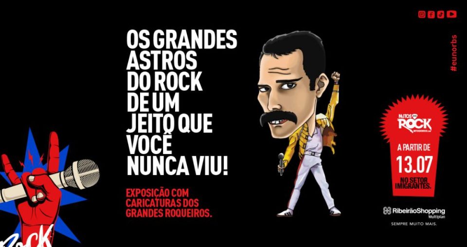 Em comemoração ao dia mundial do rock, celebrado nesta quinta-feira, dia 13 de julho, o RibeirãoShopping exibe, entre os dias 13 e 31, caricaturas de personalidades conhecidas do gênero musical. A exposição “Mitos do Rock”, assinada pelo artista André Araujo, pode ser apreciada, gratuitamente, no Setor Imigrantes do empreendimento.