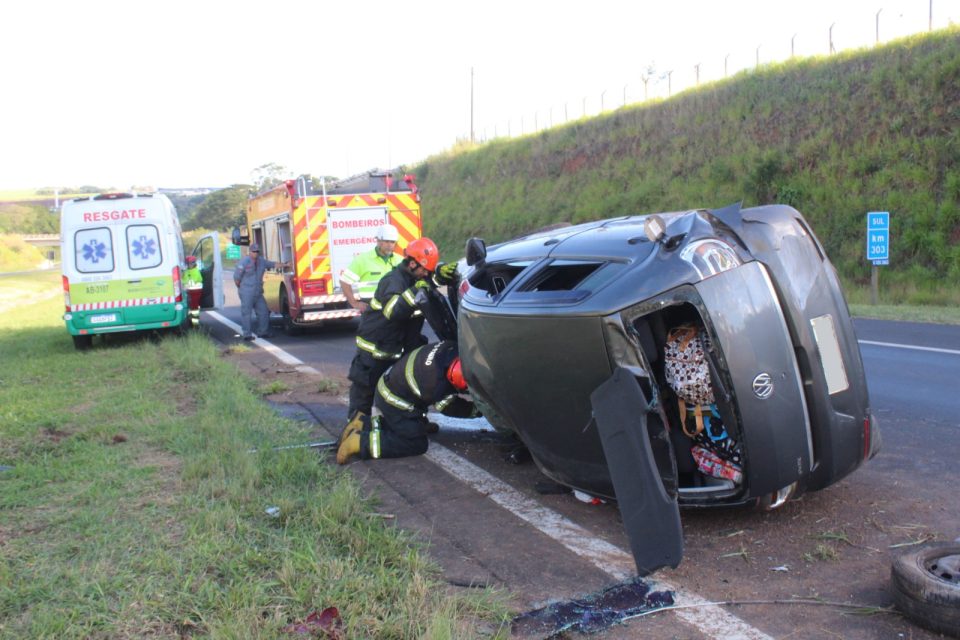 O veículo ficou desgovernado e começou a capotar. Atravessou o canteiro central e parou no acostamento da pista sentido Capital. No carro, além do motorista, estavam sua esposa e três crianças, todas no banco traseiro.