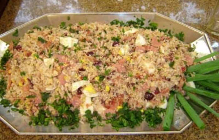 5. Coloque em uma travessa, enfeitando com os ovos picados e cebolinha.