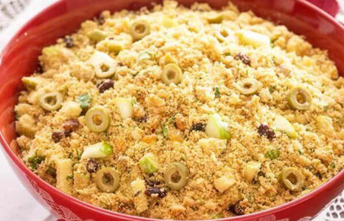 4. Junte as azeitonas, os ovos, o sal e a salsinha picada, misturando bem.