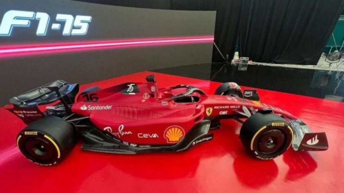 O carro de 2022 conta com guelras nas laterais, assim como a Aston Martin do alemão Sebastian Vettel e do canadense Lance Stroll. O modelo, claro, é na cor vermelha, mas com uma presença maior do preto e o acabamento fosco. O bico dianteiro da nova F1-75 chama a atenção por um design mais afinado no comprimento. Nas laterais, além das guelras, também se destaca uma espécie de “piscininha”, uma pequena cavidade na lateral do bólido.