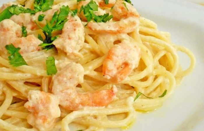 Fettuccine ao limão com camarões