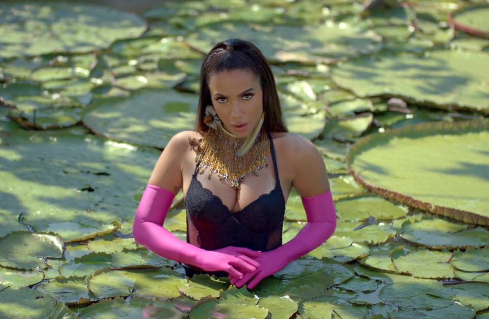 “A ideia foi criar algo que nos estimulasse. Sem regras e muita energia vital”, contou a stylist para a Vogue. “Resolvemos olhar para a beleza de várias culturas pelo Brasil e mostrar um pouco das cores da Amazônia. A floresta tem um significado especial para Anitta, e por isso trouxemos essa força no figurino do clipe.”