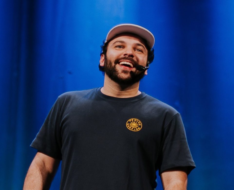 O humorista é carioca e tem 33 anos. Aos 14 anos ingressou na Academia Nacional de Atores, onde cursou TV, Teatro e Cinema. Aos 15, passou a estudar no Teatro Tablado, de Maria Clara Machado, onde praticou improvisação livre por nove anos.