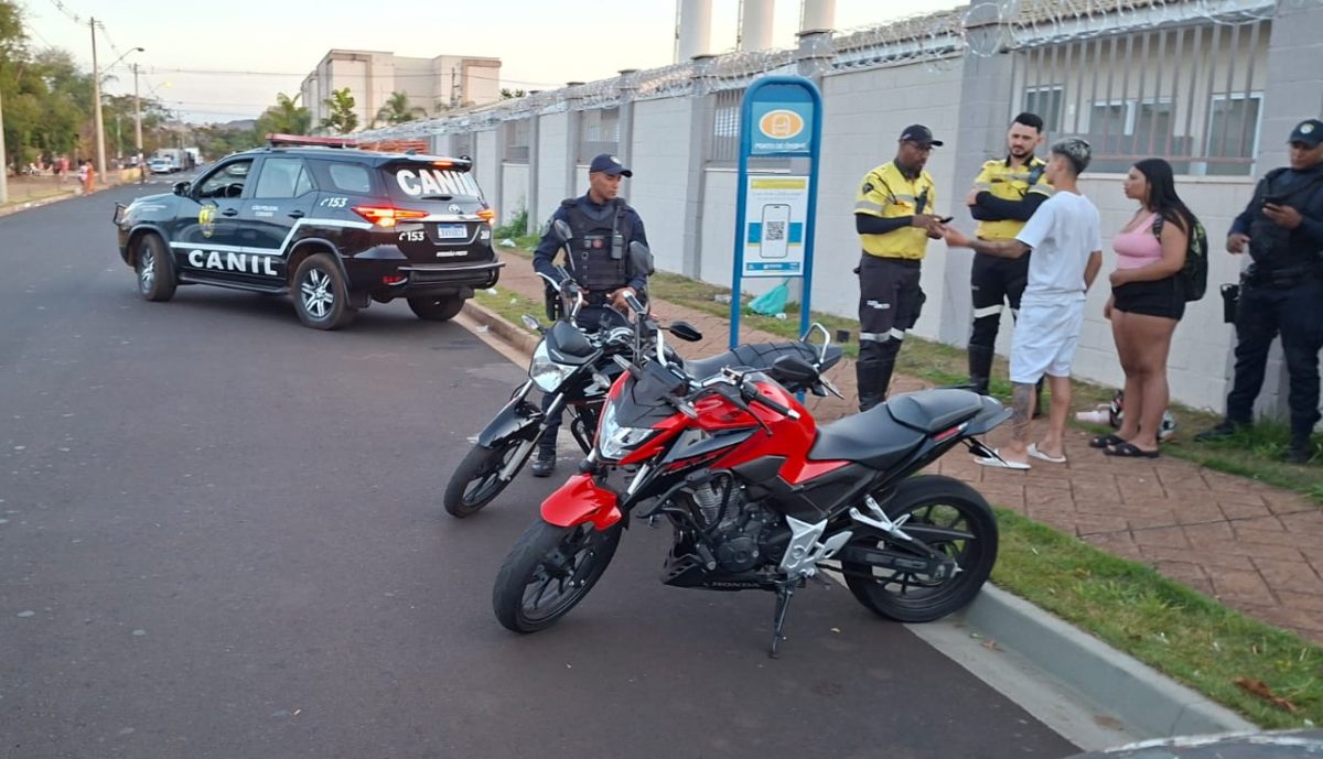 A RP Mobi foi acionada e foi ao local. As motos foram levadas para um pátio e as multas pelas irregularidades foram aplicadas.