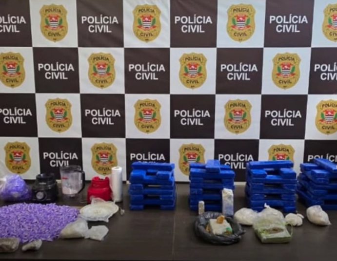O suspeito também era investigado por movimentar grande quantidade de drogas. Os policiais civis foram até um dos endereços do suspeito, onde a droga era refinada e porcionada.