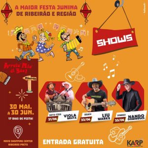 O evento vai de sexta a domingo até o dia 30 de junho. O Arraiá Mió di Bão – Ribeirão! conta com o apoio da Prefeitura de Ribeirão Preto, por meio da Secretaria de Cultura e Turismo.