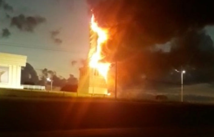 O monumento era uma réplica da Estátua da Liberdade, que é um símbolo da rede. Segundo o Corpo de Bombeiros, ainda não há indícios do que possa ter causado o fogo e ninguém ficou ferido”, informou a reportagem do G1.