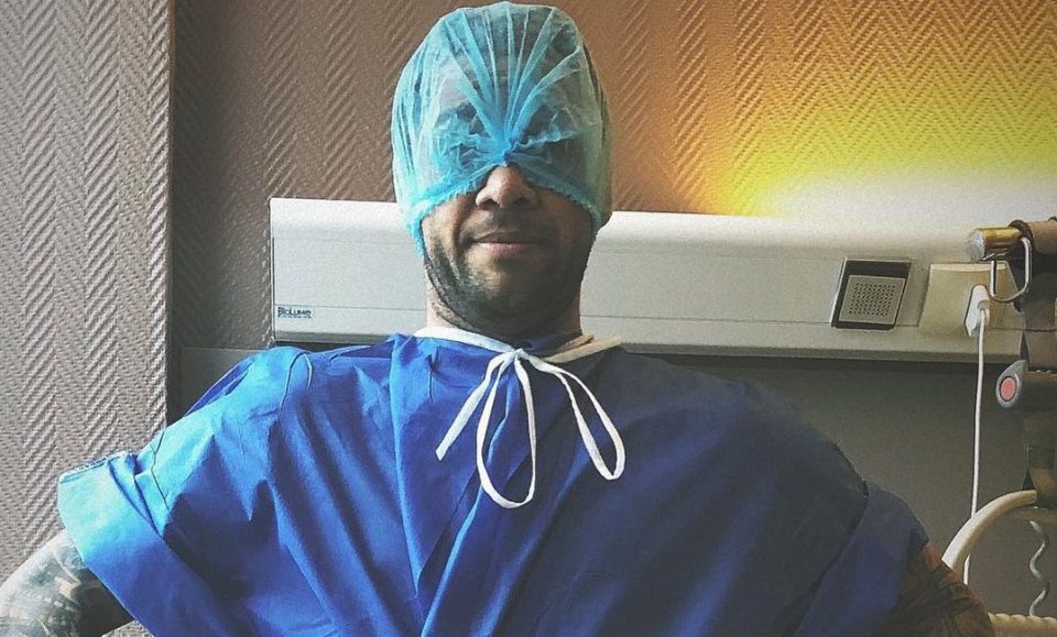 Momentos depois do procedimento, Daniel Alves utilizou as redes sociais para informar que correu tudo bem e postou uma foto brincando com os efeitos da anestesia. Na imagem, Daniel Alves aparece com a toca médica enterrada na cabeça, cobrindo seus olhos.