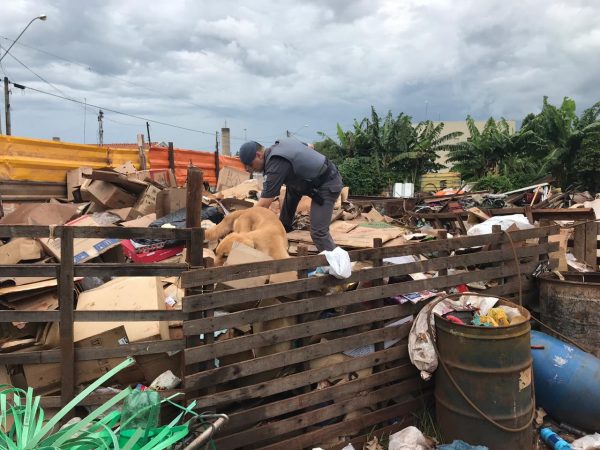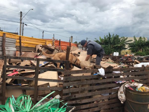 Na busca em um ferro velho no Jardim Jandaia, zona Norte, o cão Full do Canil da PM farejou encontrando 330 gramas de cocaína escondidos no local. O proprietário foi levado à CPJ (Central de Polícia Judiciária) e vai responder pelo crime de tráfico de drogas. Ele já tinha passagens e deixou o presídio no início do ano passado, após cumprir pena pela mesma modalidade criminosa.
