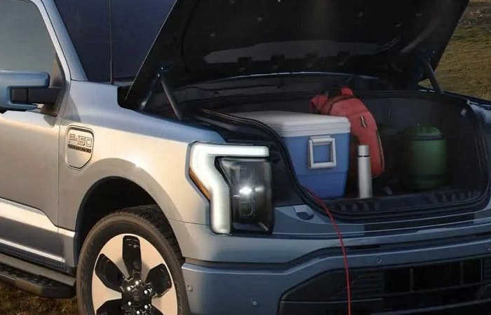 O porta-malas frontal da Ford F-150 possui carga útil de 181 kg — superando concorrentes como o Lucid Air e o Rivian R1T — e uma altura de acessibilidade semelhante à do SUV Expedition. De acordo com a montadora americana, há seis formas diferentes de abrir o compartimento, inclusive por meio do app FordPass em um smartphone e por meio de um botão na grade.