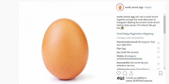 A escolha do ovo foi porque o alimento “não tem gênero, raça ou religião. Um ovo é um ovo, é universal”. O desafio foi alcançado e a foto passou das 50 milhões de curtidas.
