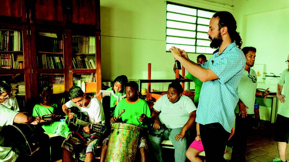 “Conhecer a Casa das Mangueiras me fez lembrar um projeto que tive com crianças moradoras da comunidade da Rocinha, no Rio de Janeiro. Com o rap e com a música, o público infantil tem outra perspectiva de futuro”, disse Gabriel.