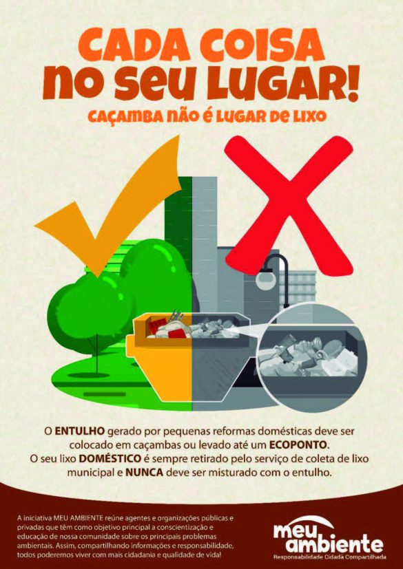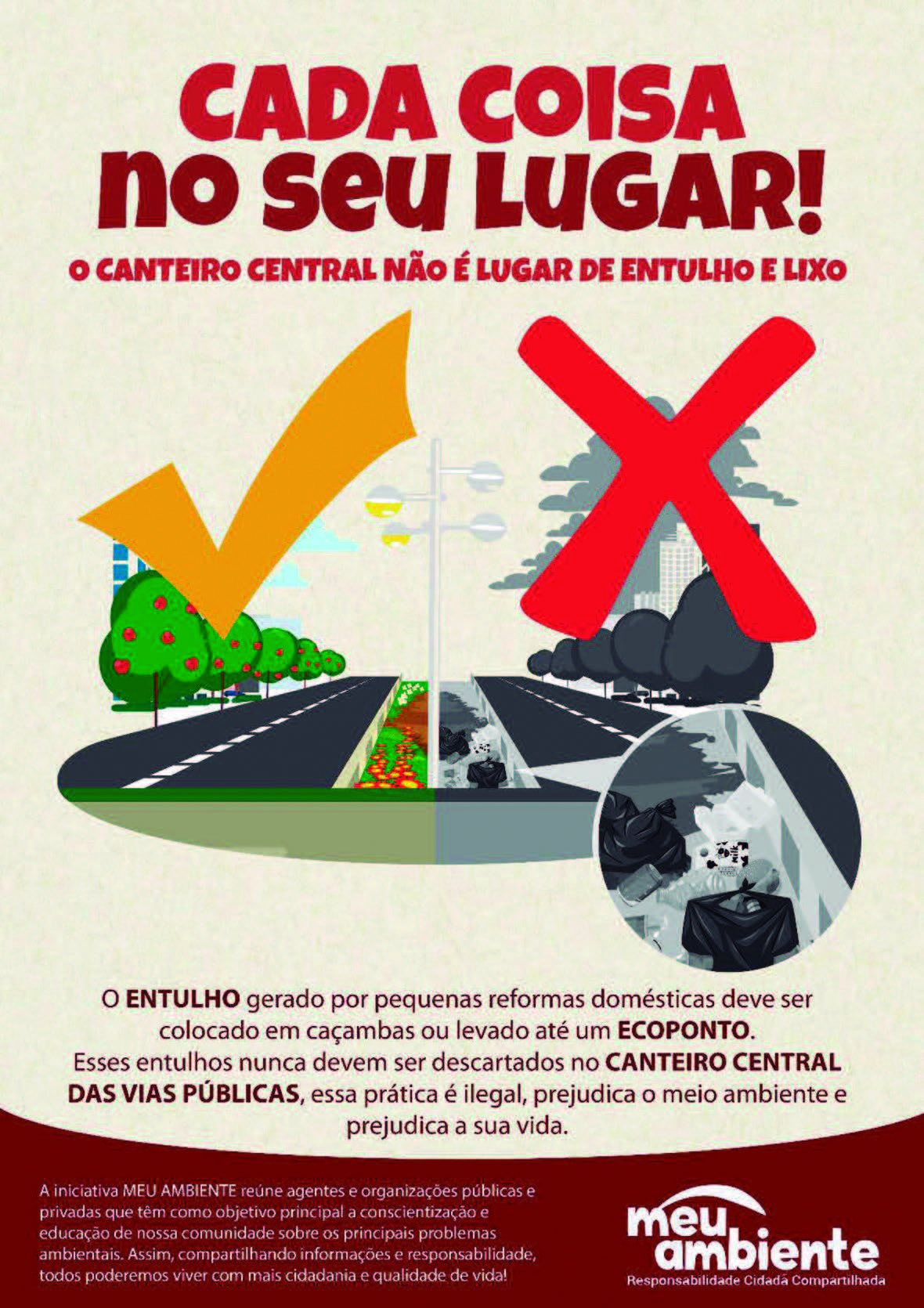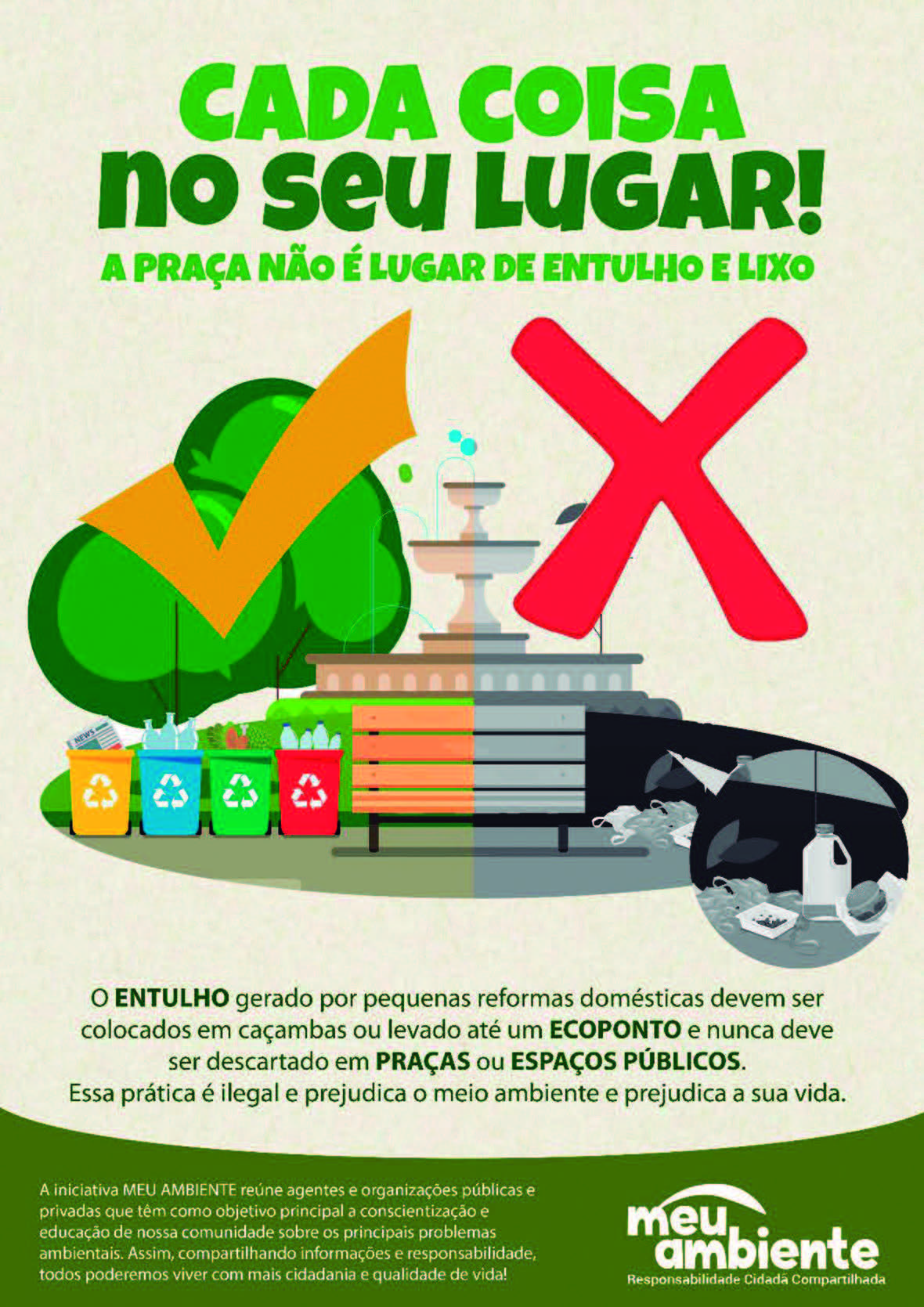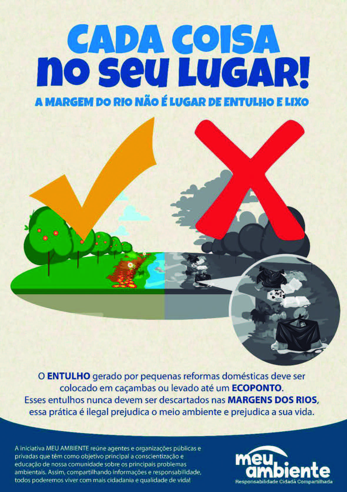 A primeira campanha se refere a resíduos sólidos (en­tulho). Posteriormente serão abordados os temas: água, queimadas, vegetação e fau­na. O jornal Tribuna Ribeirão divulga­rá em suas páginas a campa­nha ‘Meu Ambiente’.