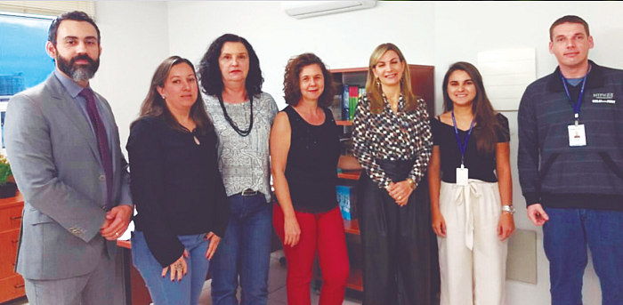 O grupo do GAEMA, liderado pelos promotores Guilherme Chaves Nascimento (primeiro à esquerda) e Cláudia Maria Lico HabibTofano (5ª da esquerda para a direita) teve a iniciativa dacampanha de educação ambiental