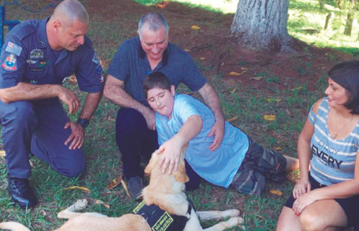 Pai do adolescente, José Antônio da Silva afirma que pediu o apoio da PM para treinar o animal porque conheceu um trabalho semelhante em Santa Catarina. Depois, soube que Cazarotte faz esse tipo de adestramento. “A finalidade é detectar o odor do hormônio cortisol, que é ligado ao estresse e à ansiedade. Quando detectado o alto nível desse hormônio, o cão começa a interagir com a criança, melhorando assim a agressividade e isolamento”, diz o PM. Atualmente, no Brasil, cerca de dois milhões de pessoas têm autismo.