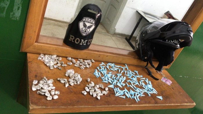 Posteriormente, com apoio de equipes da Ronda Municipal Ostensiva (Romu), a bolsa foi retirada da água e as drogas localizadas. Entre elas, havia 150 pinos de cocaína e 101 trouxas de maconha.