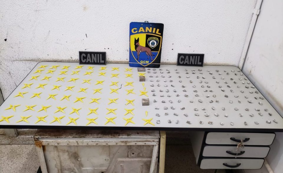Depois, teria saído sem a sacola. Os GCMs foram até o local indicado e, com a ajuda do k-9 (cão farejador) Odin, fizeram buscas no imóvel. A droga foi encontrada escondida debaixo de um vaso sanitário jogado no terreno da casa.