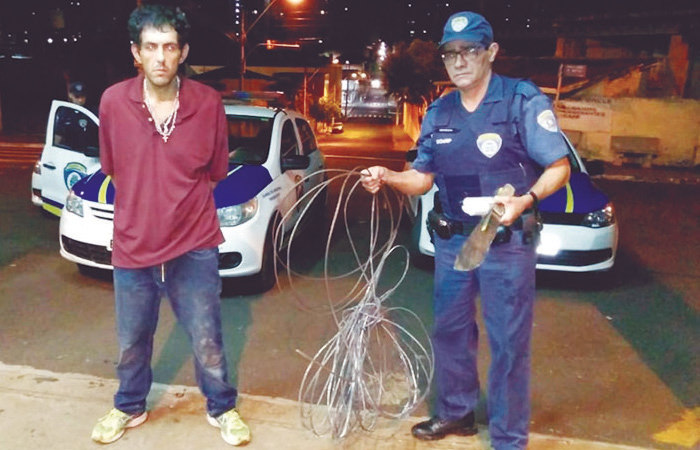Com ele foram apreendidos uma faca, um facão, uma serra manual, 200 metros de fios de cobre e 30 metros de fios de tele­fone. Após ser detido, o homem foi encaminhado até a Central de Polícia, onde foi realizado um boletim de ocorrência e o autor do crime foi autuado em flagran­te. O homem foi levado para a delegacia onde foi autuado por furto qualificado. Em nota, a Secretaria Municipal de Esportes informou que o ladrão retirou a instalação do para-raios do giná­sio, mas que não houve suspensão das atividades. Já a Secretaria de Cultura informou que o furto de alguns cabos de força comprome­teu o funcionamento de parte do maquinário de sonorização e ilu­minação. As companhias teatrais com apresentações previstas no prédio estão sendo avisadas sobre o imprevisto para que seja discu­tida a adaptação dos espetáculos. Apenas a peça teatral “N”, que seria encenada nesta quinta-feira (14), foi cancelada.