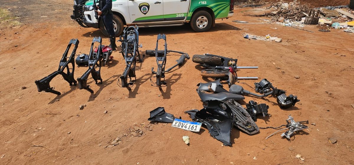 Além disso, os agentes localizaram dois tanques e duas rodas dianteiras ainda com os garfos. Luchetti acredita que pertençam a algum dos quadros localizado. Os agentes apreenderam também três escapamentos de motos e placas de veículos, uma delas de um Fiat Pálio furtado em 2024.