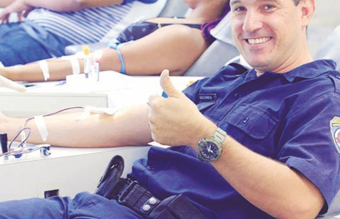 O GCM Grejje é doador de sangue desde os 19 anos. Ele é AB negativo, um tipo raro. “Sempre que possível venho doar. Toda vez que o Hemocentro liga venho doar para incentivar os colegas de trabalho e amigos a doarem também”, conta. A grande maioria dos guardas municipais que foram ao Hemocentro nesta quinta-feira já é doadora de sangue.