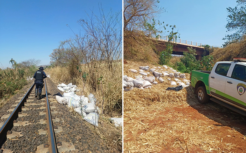 Chegando ao local, a equipe da Patrulha Rural encontrou seguranças da ferrovia. Eles informaram que as sacas de açúcar haviam sido desviadas por seis homens, que fugiram assim que chegaram ao local.