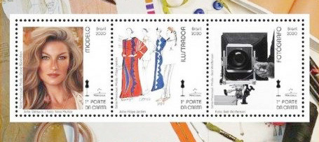 Um selo com o rosto de Gisele Bündchen foi lançado nesta terça-feira (29), pelos Correios. Ele faz parte da última emissão de 2020 e integra o Bloco Especial Série Mercosul: Moda.