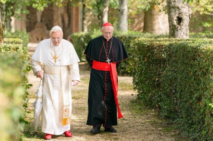 O filme foi indicado nes­ta segunda-feira (9) a quatro prêmios do Globo de Ouro, em sua edição 2020: Melhor Filme de Drama, Melhor Ator com Johnatan Pryce (como papa Francisco), Melhor Ator Coadjunvante com Anthony Hopkins (como papa Bento XVI) e Melhor Roteiro, de Anthony McCarten.