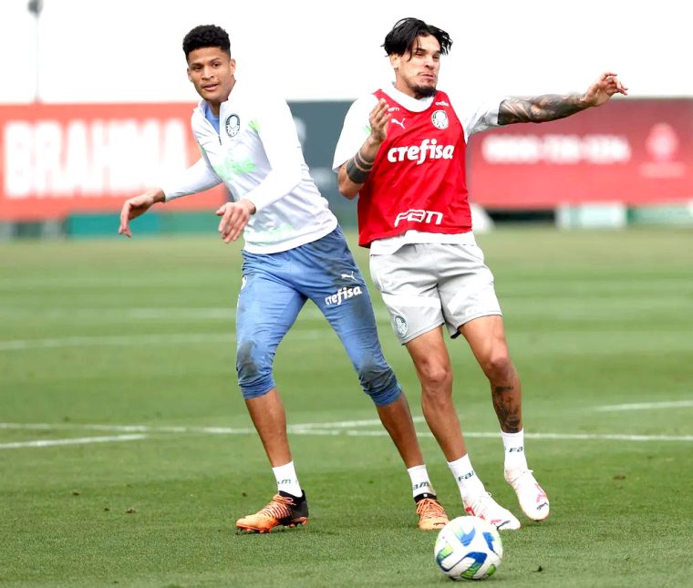 O técnico Abel Ferreira trabalhou com todos os jogadores que estavam servindo suas seleções nas Eliminatórias nesta quinta-feira. O zagueiro paraguaio Gustavo Gómez disputou toda a atividade ao lado de Richard Ríos, Rafael Veiga e Piquerez e deve reforçar a equipe diante do Goiás, nesta sexta-feira. Apesar do enorme favoritismo no Allianz Parque, o lateral-esquerdo cobrou atenção à equipe.