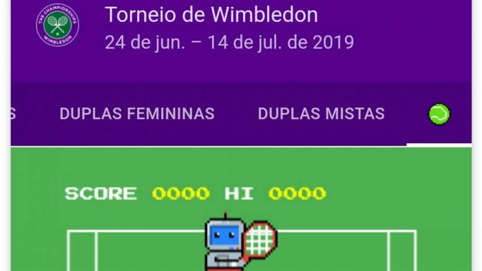 Não são poucos os jogos e brincadeira escondidos dentro do buscador do Google, basta apenas saber como procurar. Desta vez, a empresa decidiu incluir um joguinho para celebrar o torneio de tênis de Wimbledon, incluindo um game inspirado no clássico “Pong” quando o usuário realiza algumas ações específicas.