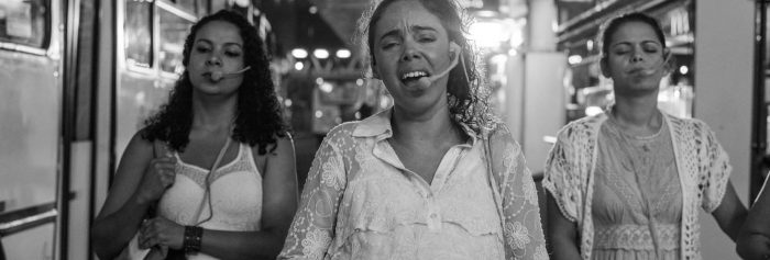 Partindo do terminal, os passageiros vão interagir com artistas incumbidos de transportá-los a diversos lugares ficcionais. O espetáculo é outra demonstração da pesquisa delicada da Sinhá Zózima, que utiliza o ônibus como palco – assim como já fez em espetáculos anteriores, entre eles “Cordel do amor sem fim” e “Iracema Via Iracema”.