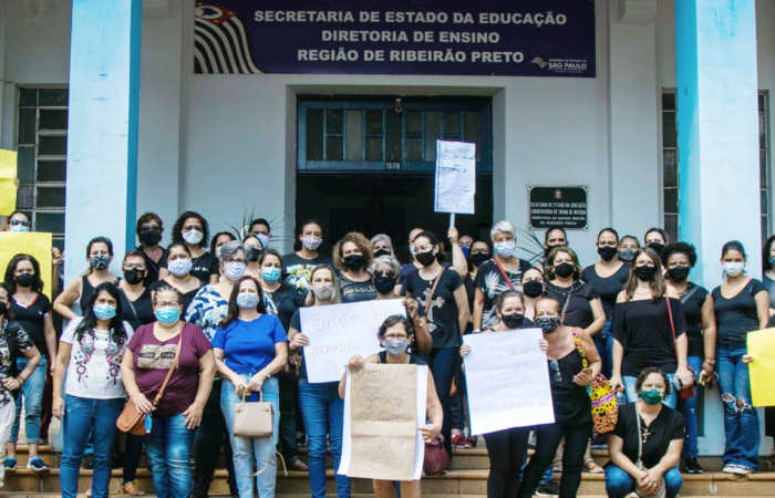 Nesta segunda-feira, 18 de outubro, dia em que o retorno dos alunos da rede estadual às escolas passou a ser obrigatório, cerca de 200 agentes de organização escolar do Estado de São Paulo em Ribeirão Preto participaram de um protesto por não terem sido contemplados com o abono salarial destinado ao magistério paulista, anunciado na sexta-feira (15) pelo governador João Doria (PSDB) pelo secretário da Educação, Rossieli Soares.