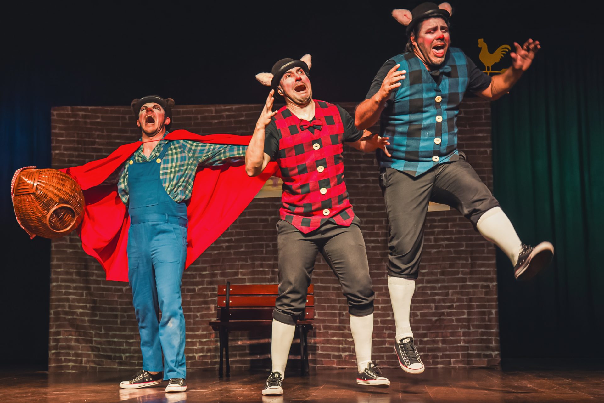 O espetáculo “Os 3 Porquinhos e a Volta do Lobo Mau” também tem direção e texto de Fábio Agueda e Fernando Alves. No palco, os atores Alan Nascimento, Fábio Agueda, Fernando Alves e Joyce Camassutti encenam a história.