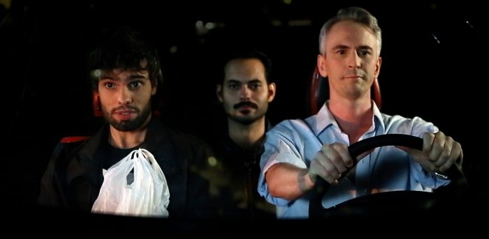 O ator Márcio Machado interpreta Gatão, um homem de quarenta e poucos anos com medo do passado, enquanto Gunnar Borges interpreta Mocinho, um homem com trinta e poucos anos com medo do futuro. Entre eles, porém, há um terceiro personagem interpretado por Andrêas Gato: a nave, um automóvel com espaço interior para apenas duas pessoas e que, muitas vezes, parece enxergar aquilo que os outros dois não percebem.