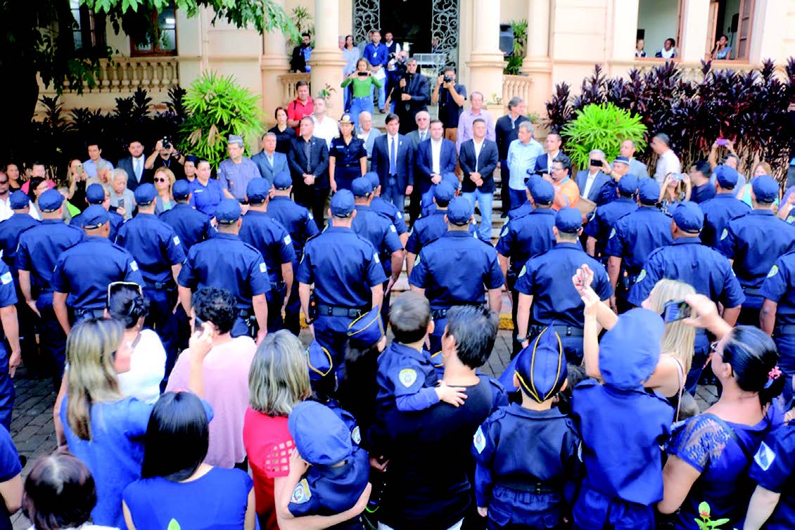 Há oito anos a Guarda Civil Municipal (GCM) não vivia um dia tão marcante como nesta quinta-feira, 7 de junho. “Esse dia, aqui na escadaria do Palácio Rio Branco, vai ficar marcado na mente de todas as senhoras e senhores, dos seus familiares, filhos, amigos e servidores que se incorporam agora à GCM”, definiu o prefeito Duarte Nogueira Júnior (PSDB) ao parabenizar toda a corporação pela formatura dos 48 novos integrantes da “Família Azul Marinho”, como se referem à GCM ribeirão-pretana.