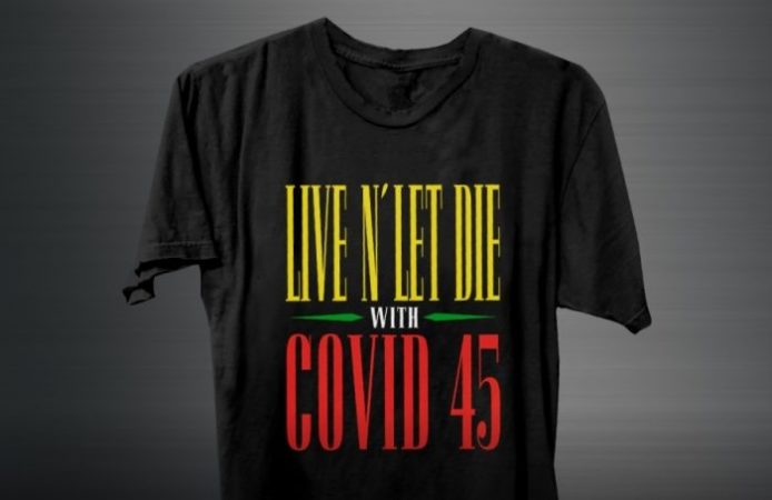 A camiseta traz o nome da música Live and Let Die, (viva e deixe morrer), seguida de ‘With Covid-45’, em referência ao 45º presidente dos EUA. A peça está à venda no site da banda por US$ 25 e a renda será revertida para a organização Musicares.